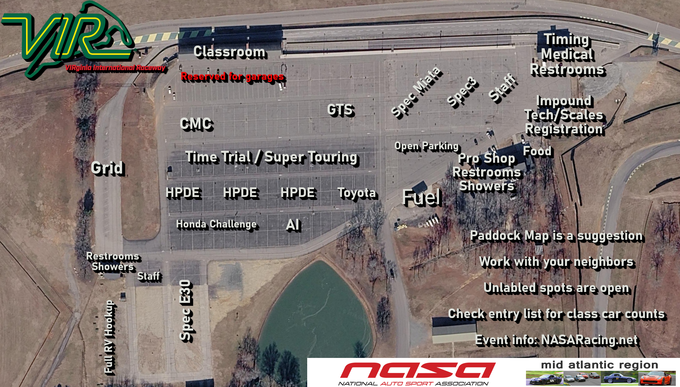 AUXILLARY PADDOCK MAP MARCH 26 NASA Parking diagram for VIR 2026 march